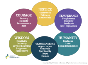 Here is an image of the character strengths from Positive Psychology –